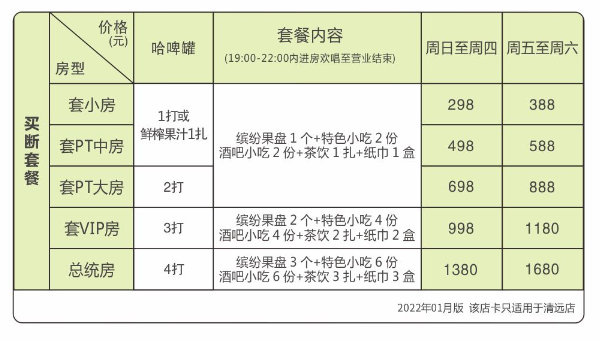 特殊节假日价格按店内公告价格为准