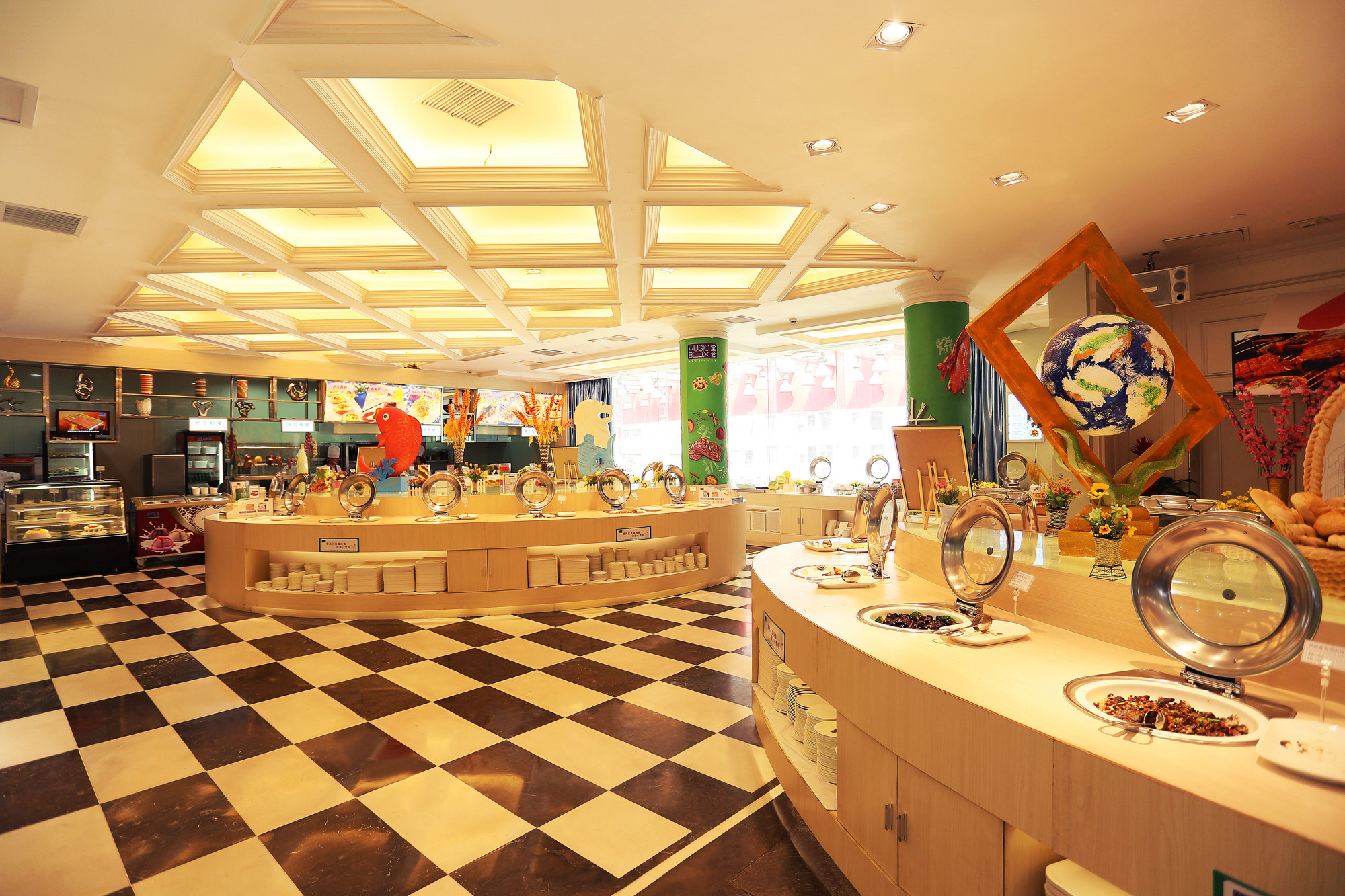 宽敞明亮的自助餐区,为顾客提供超过200款无国界美食,并设有明档区域,现场为顾客烹制美味餐点。风味多样的自助餐美食不仅涵盖了特色粤菜、港式烧腊、西式甜点、西餐牛扒、日式刺身、特色海鲜等多个种类,让顾客能品尝到更多地道、美味餐点。堂会清远店竭力打造一流的服务团队,务求让每一位顾客都能在清远店度过轻松、愉快的休闲时光。