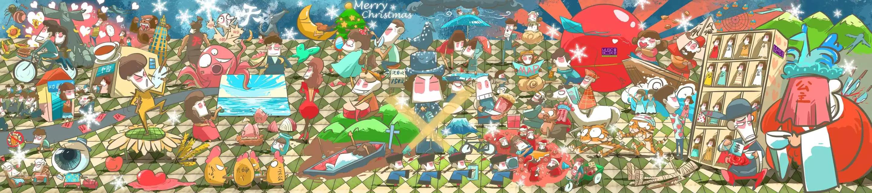 堂会邀请了漫画家炭烧老广操刀,将数十首在堂会广受K迷欢迎的歌曲用漫画的方式呈现,最终组成了这样一副“清明上河图”式的画作!