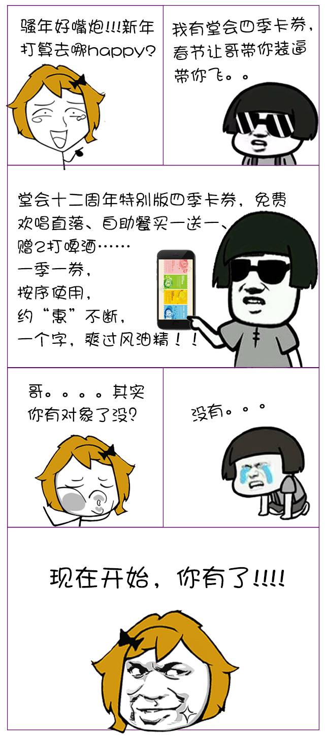 领取方式:关注我司微信公众号“堂会”,点击菜单栏“会员服务”--“四季卡券”领取
